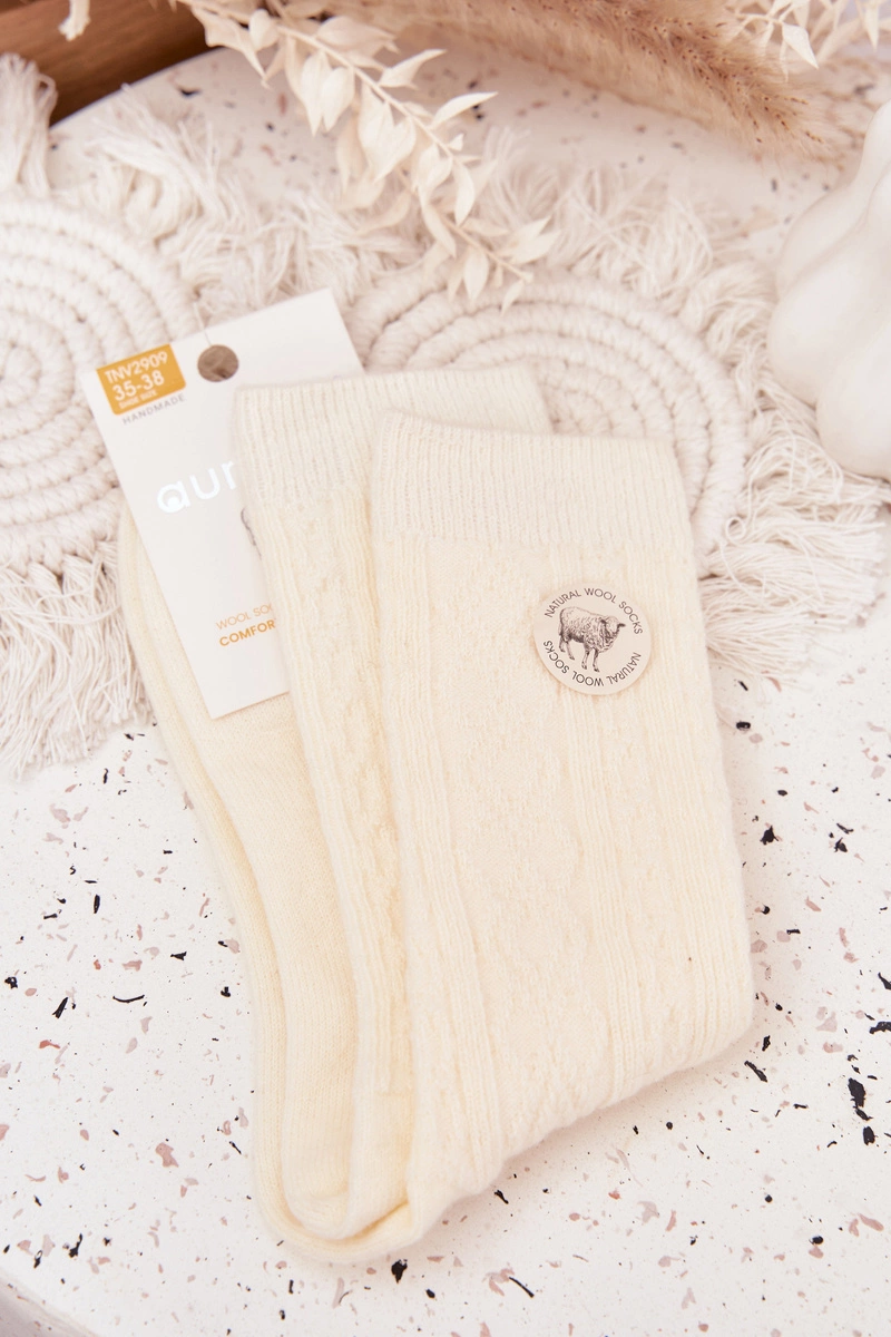 Skarpetki Damskie Wełniane Ecru