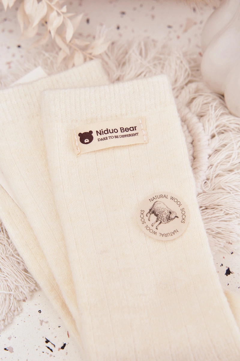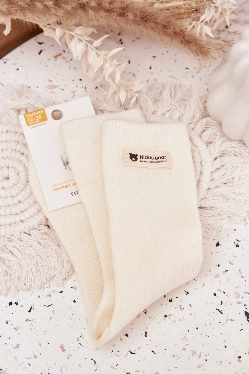 Ciepłe Wełniane Skarpetki Damskie Z Naszywką Ecru