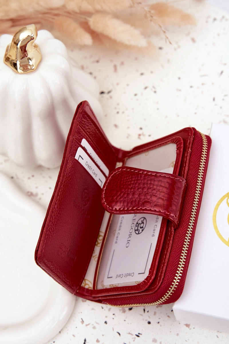 Lakierowany Portfel Damski Z Tłoczeniem Czerwony Rivonna