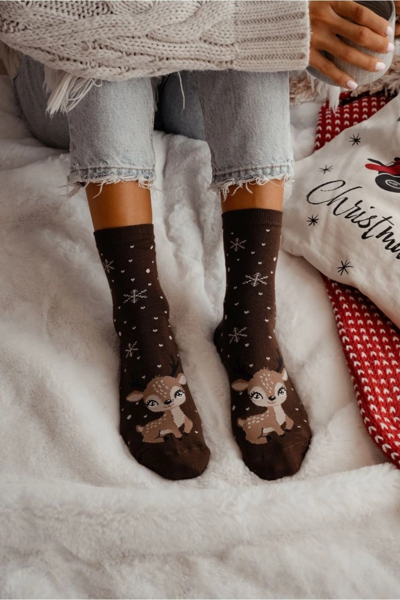 Skarpetki Damskie Świąteczne Renifer Czekoladowe