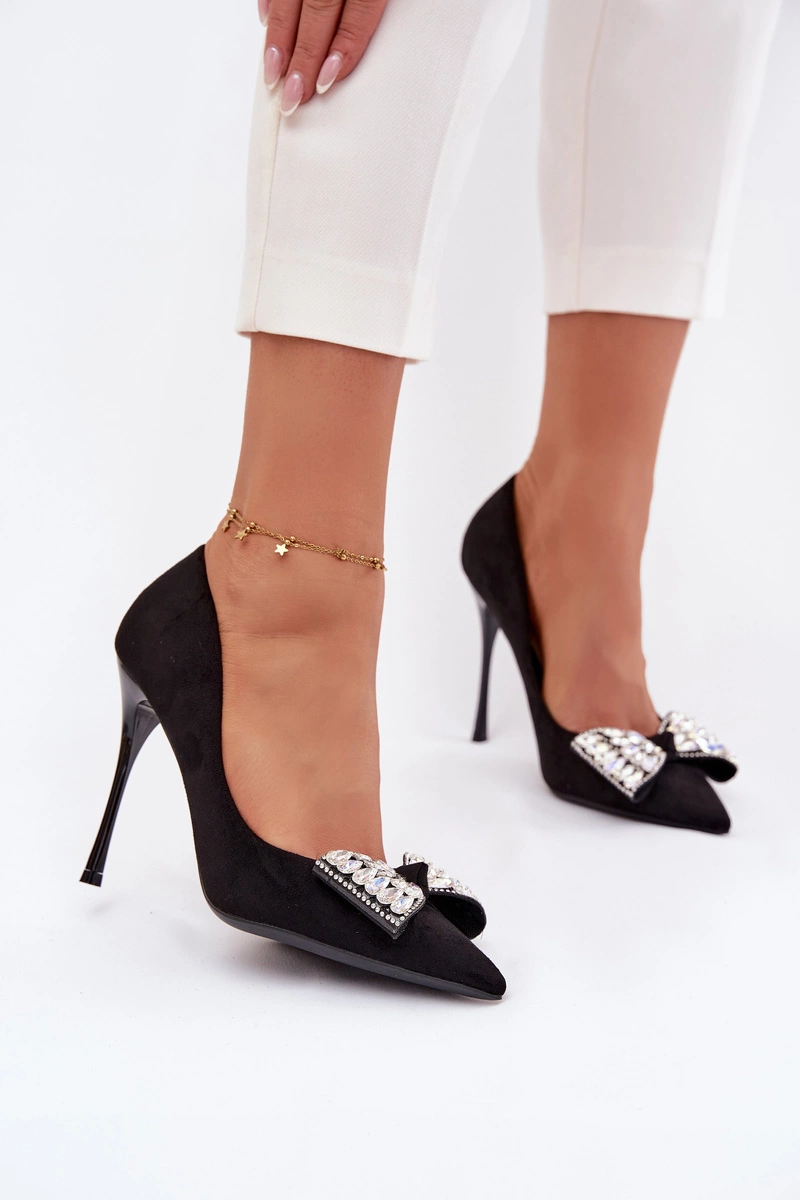 Szpilki Z Kokardą I Kryształkami Czarne Marivine