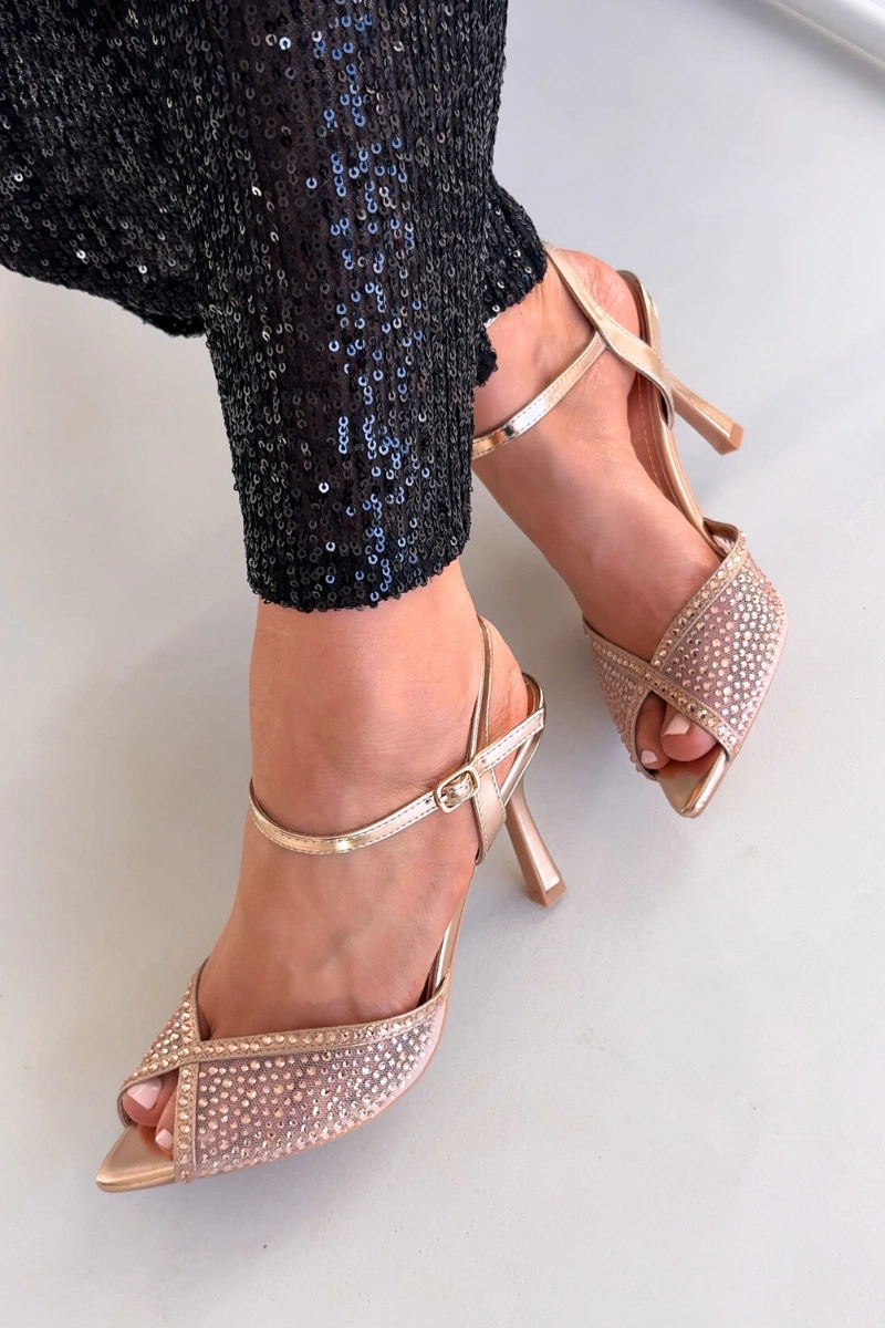 Sandały Damskie Na Szpilce Ze Zdobieniem Szampańskie Peloria