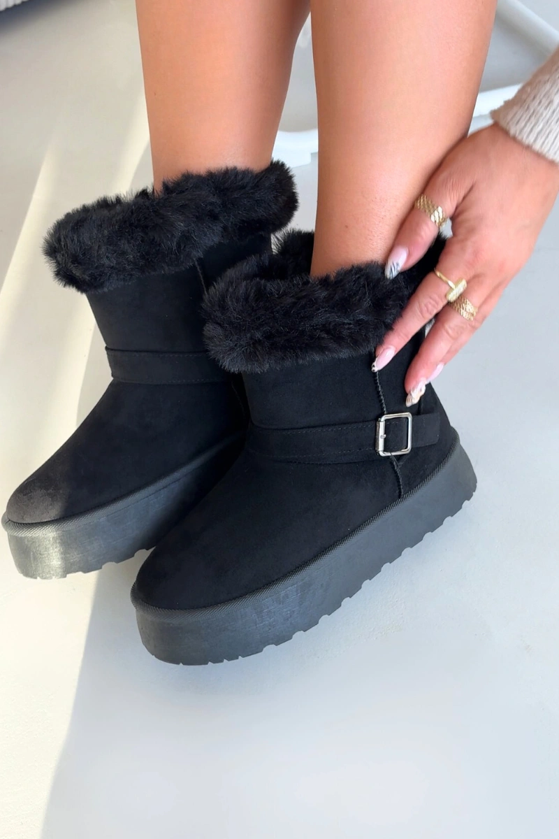Śniegowce Damskie Na Platformie Z Klamrą I Futerkiem Czarne Jesella