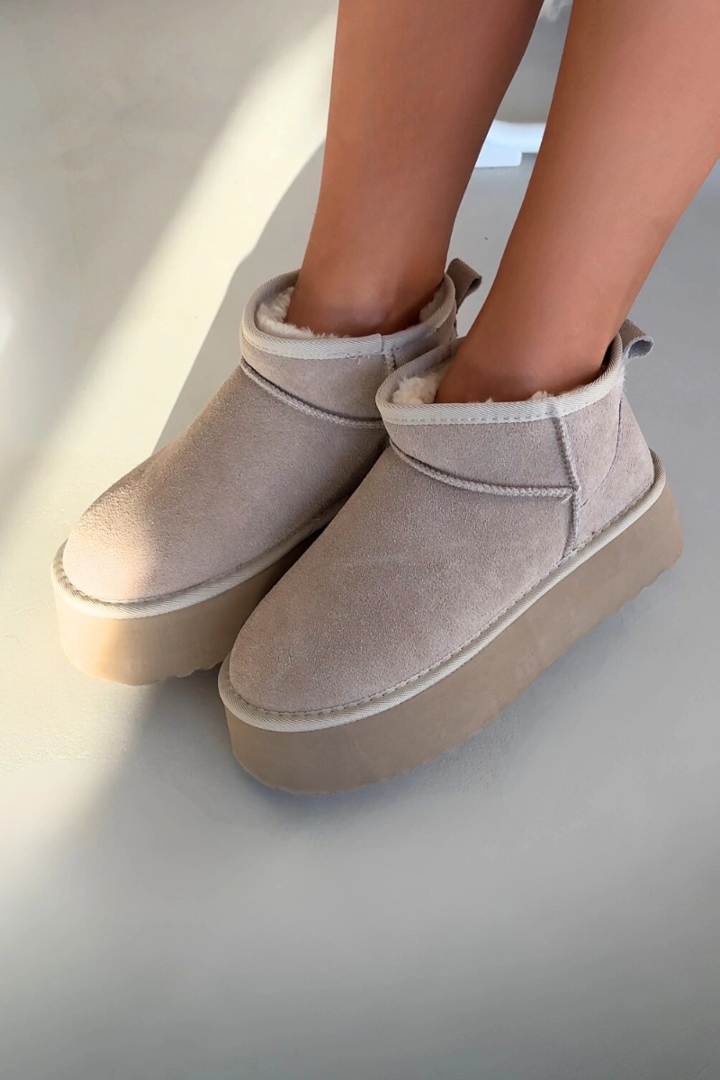 Śniegowce Damskie Z Naturalnego Zamszu Beżowe Mairene