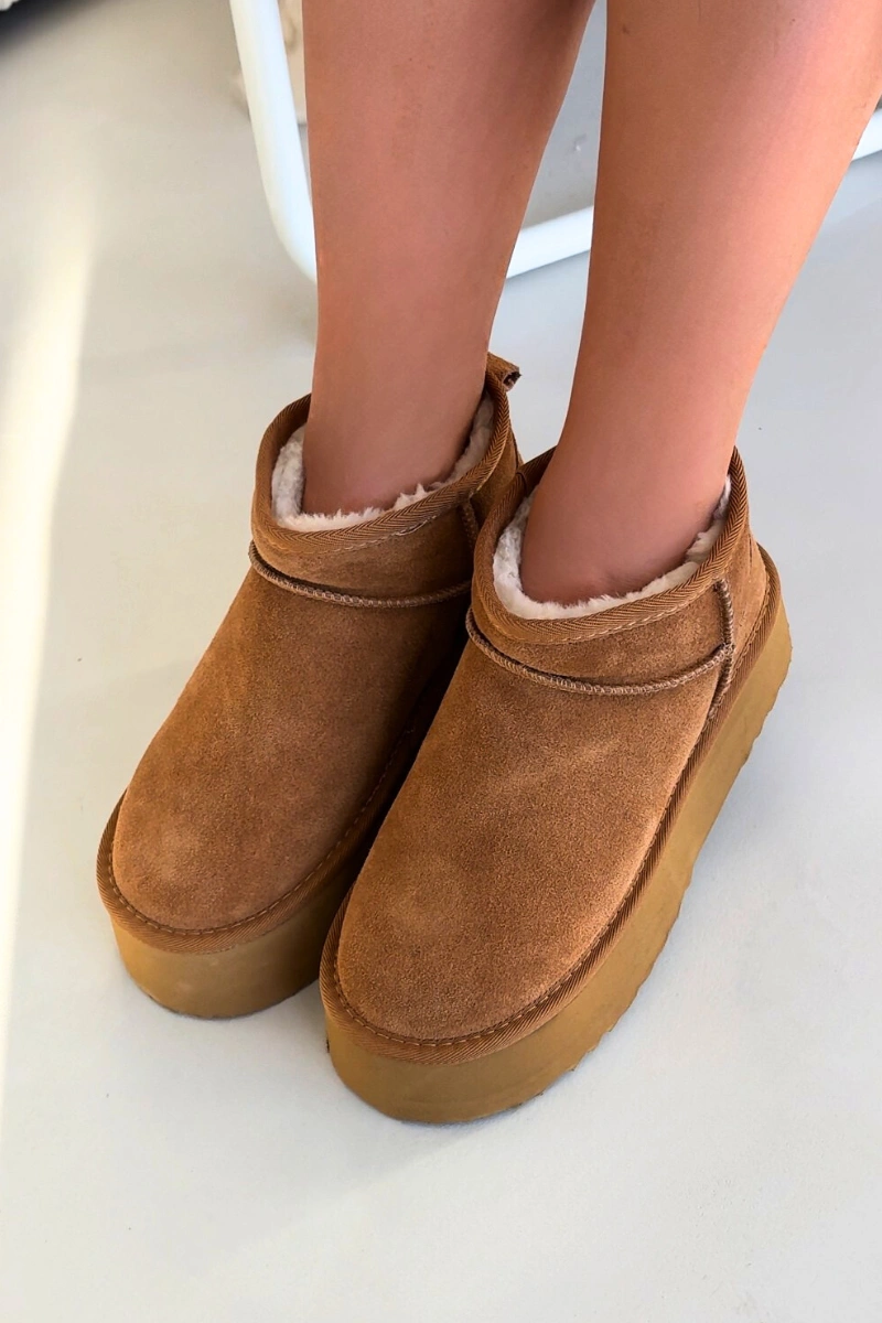 Śniegowce Damskie Z Naturalnego Zamszu Camel Mairene