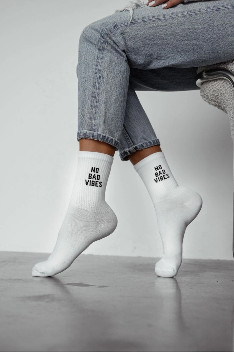 Skarpetki Damskie Z Napisem NO BAD VIBES Białe