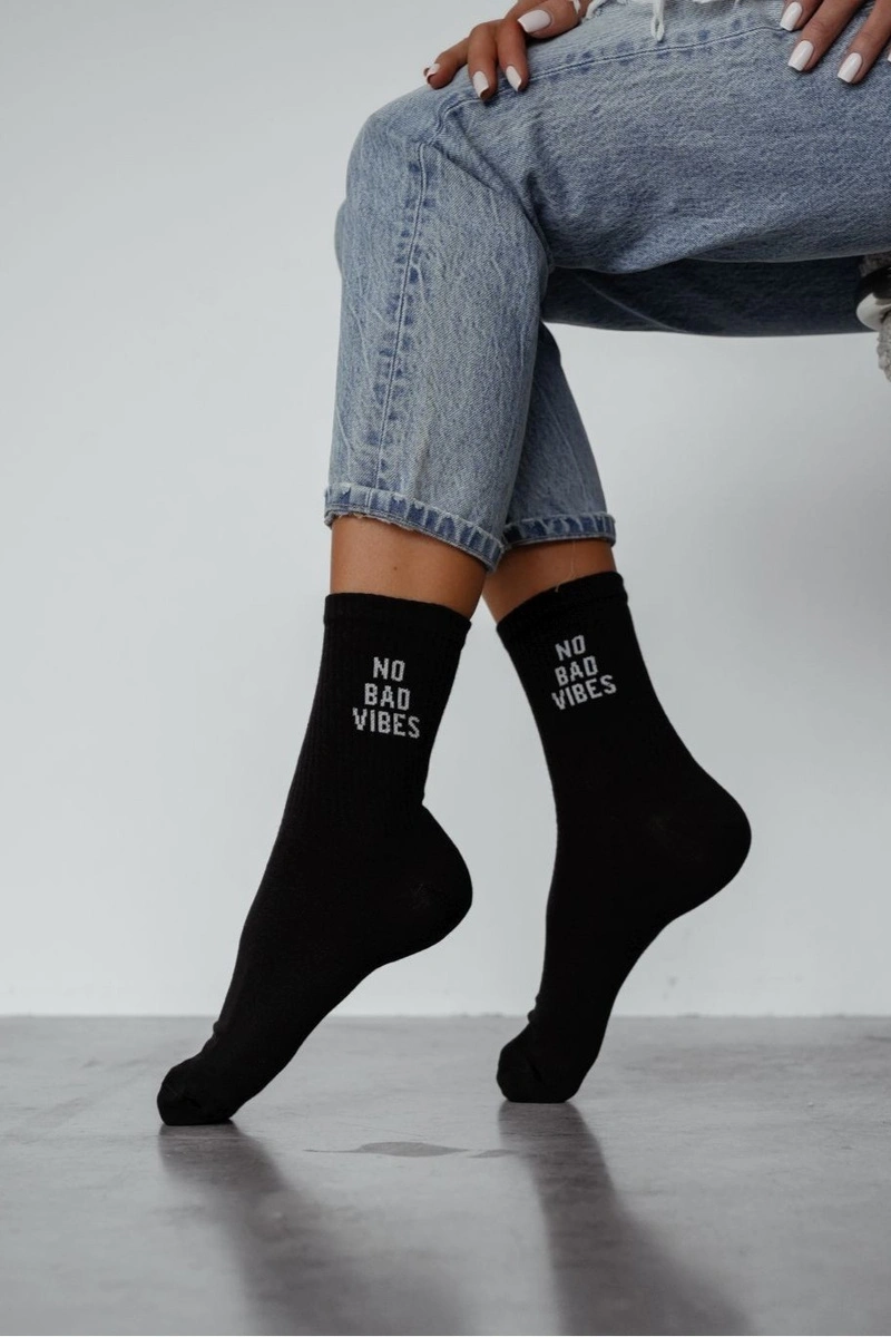 Skarpetki Damskie Z Napisem NO BAD VIBES Czarne