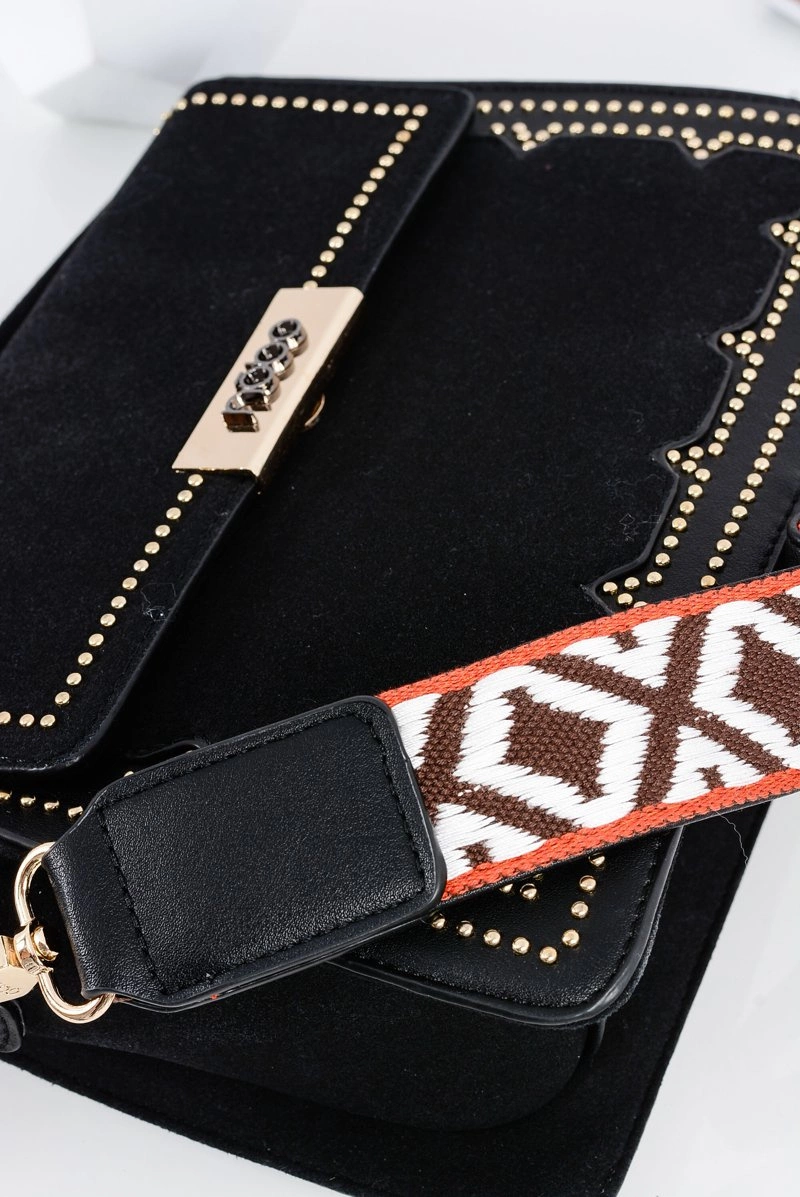 Damska Torebka Czarna Listonoszka z Cyrkoniami