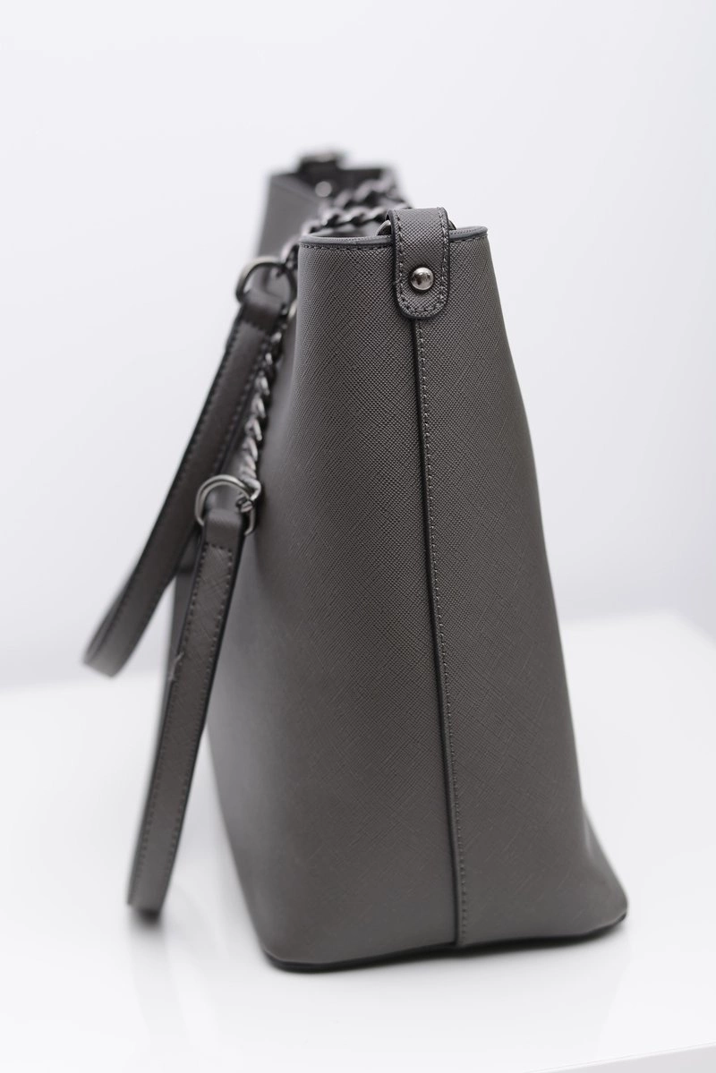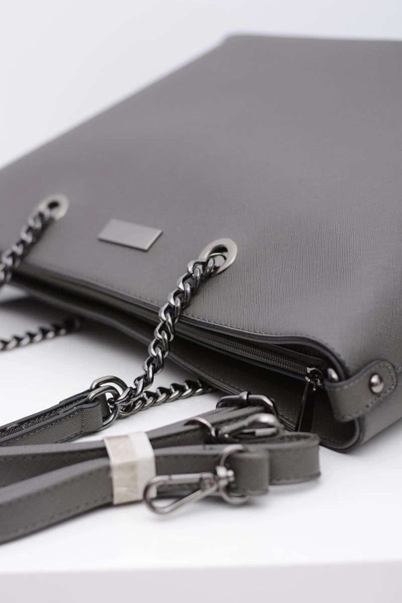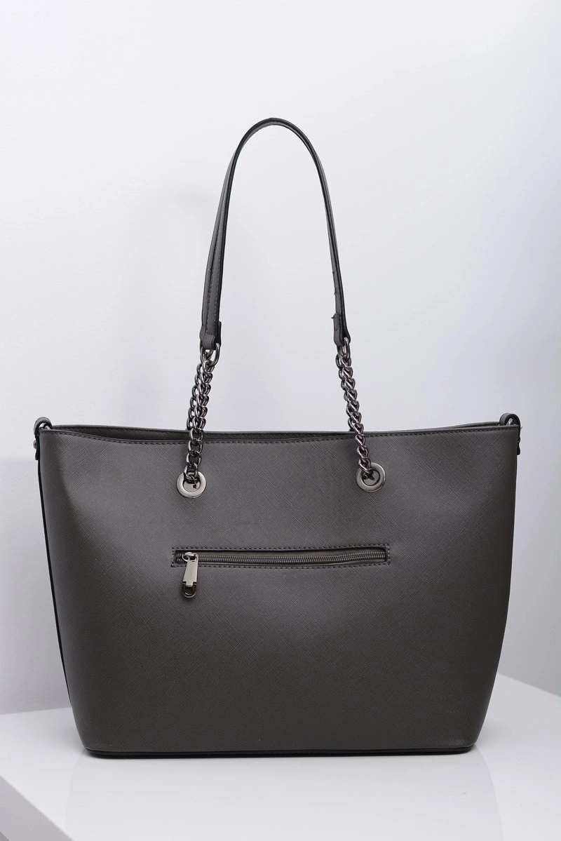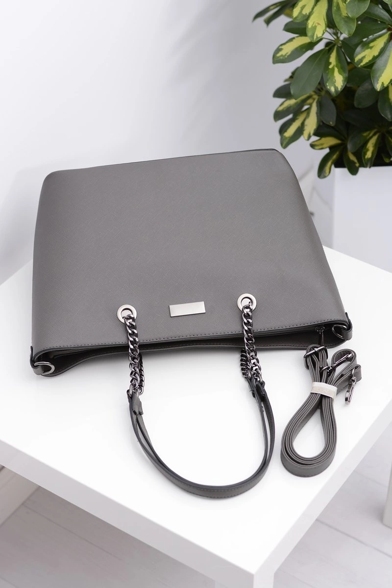 Duża i pojemna torebka z pewnością przyda się każdej kobiecie. Jedna duża komora z przegrodą oraz małymi kieszeniami. Na zewnątrz jedna dodatkowa kieszeń. Całość zapinana na zamek. W środku dodatkowy, regulowany pasek.