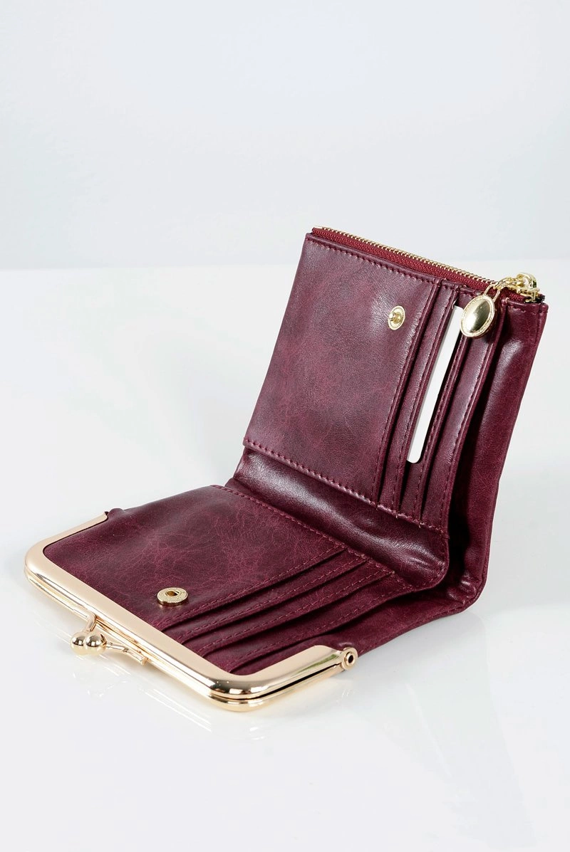 Mała Damska Bordowa Portmonetka Na Bigiel