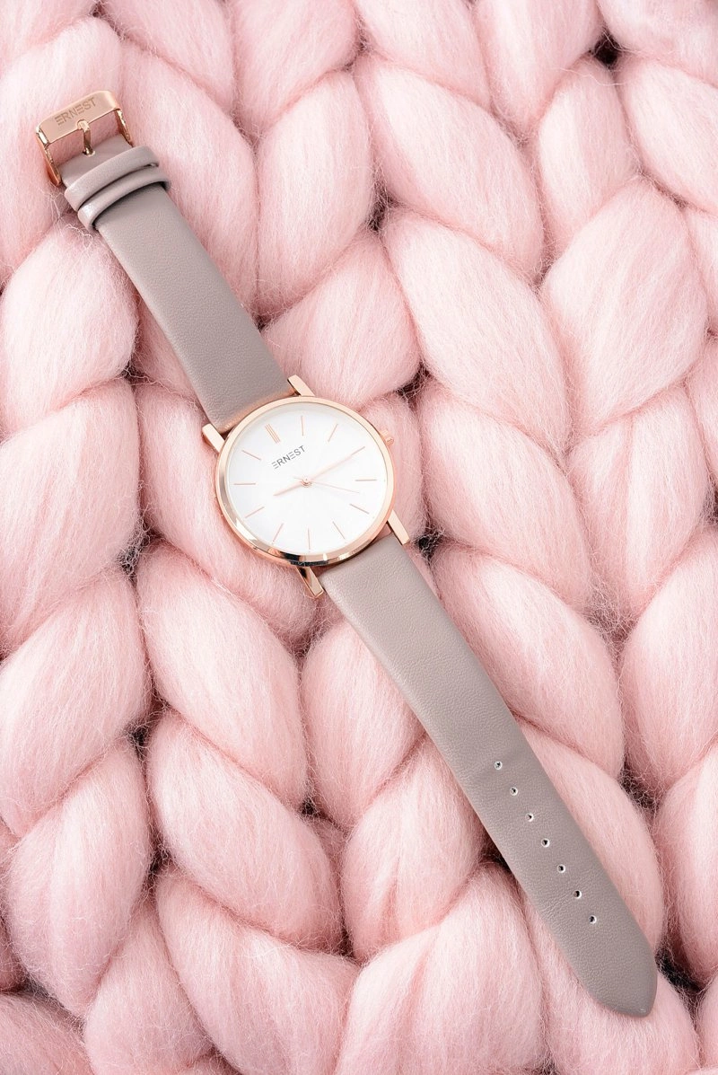 Damski zegarek Claire marki Ernest! Najnowszy model z piękną, szykowną kopertą oraz regulowanym paskiem, to idealny wybór dla eleganckich kobiet! Pasuje zarówno do codziennych stylizacji jak i tych bardziej eleganckich. Duża czytelna tarcza w kolorze paska. Nie czekaj dłużej, spraw sobie trochę elegancji w najwyższej jakości.