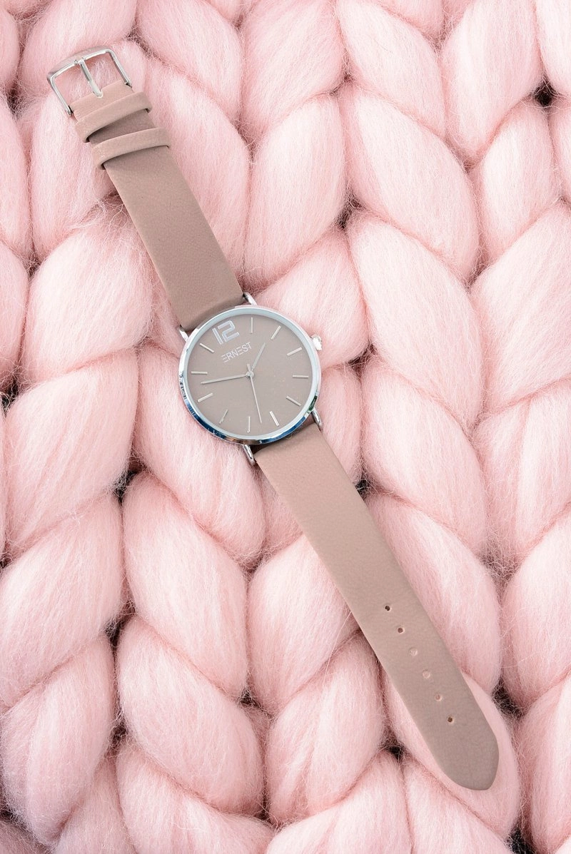 Damski zegarek Claire marki Ernest! Najnowszy model z piękną, szykowną kopertą oraz regulowanym paskiem, to idealny wybór dla eleganckich kobiet! Pasuje zarówno do codziennych stylizacji jak i tych bardziej eleganckich. Duża czytelna tarcza w kolorze paska. Nie czekaj dłużej, spraw sobie trochę elegancji w najwyższej jakości.