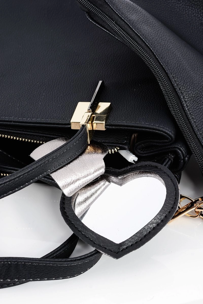 Duża Czarna Torba Damska + Saszetka + Lustereczko POLSKA
