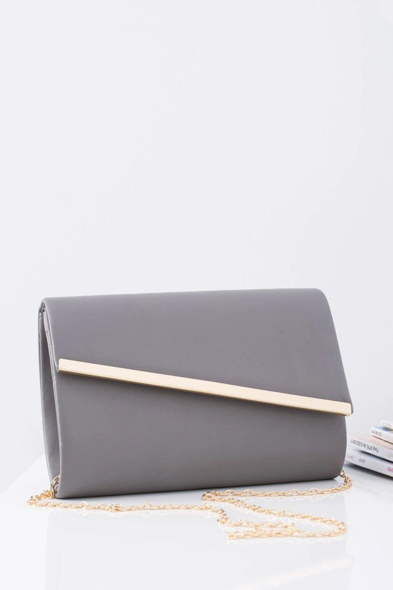 Damska Licowa Kopertówka Na Złotym Łańcuszku Szara