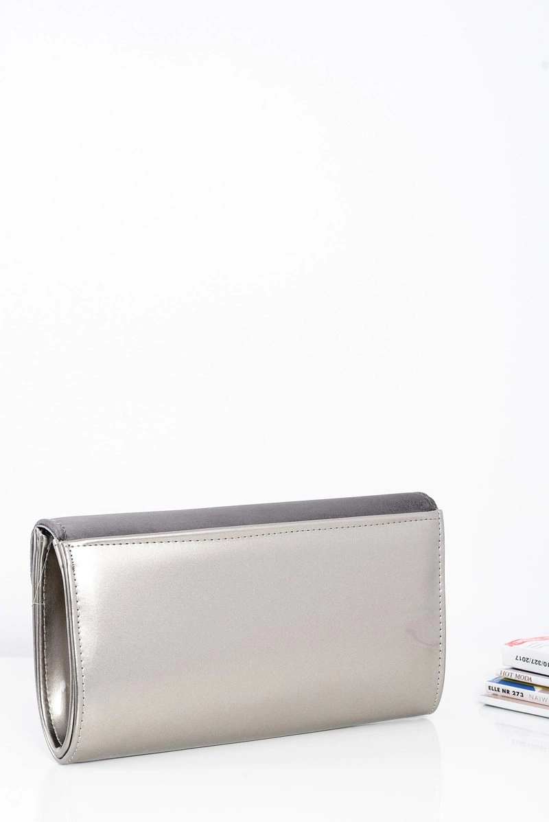 Damska Szaro Srebrna Zamszowa Kopertówka Łańcuszek