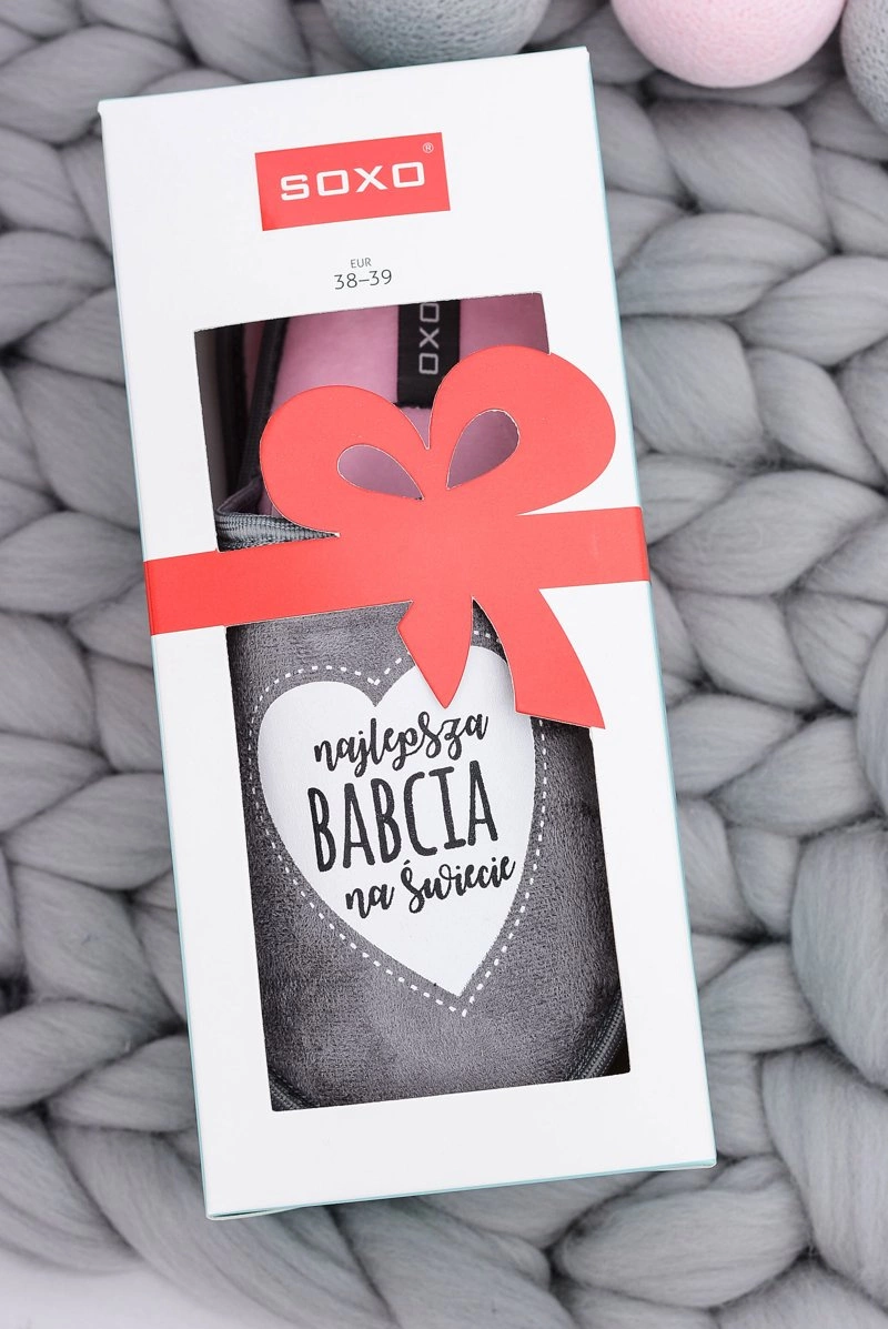 Nie masz pomysłu na prezent? Spraw swojej ukochanej osobie te wspaniałe klapki od firmy SOXO. Wykonane z delikatnego w dotyku materiału, który zapewni komfort nawet w najmroźniejsze dni. Pięknie zapakowane w stylowy kartonik, dzięki czemu nie musisz się martwić o zapakowanie. Nie zwlekaj dłużej i zamów już teraz - koniecznie sprawdź całą kolekcję prezentowych kapci firmy SOXO: Najlepsza Żona Na Świecie, Najlepsza Babcia Na Świecie oraz Najlepsza Mama Na Świecie.