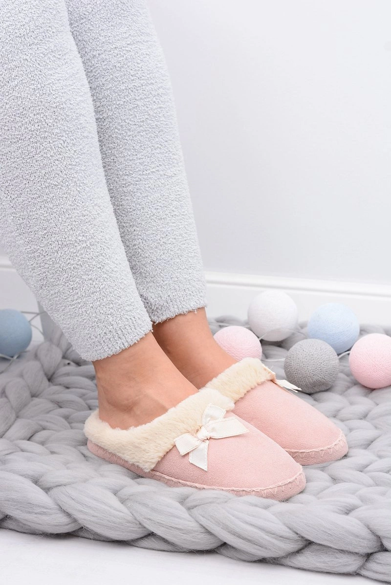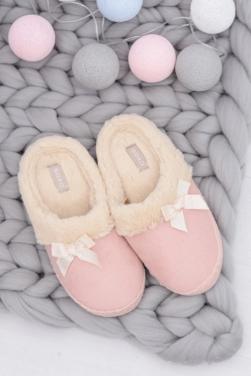 Klapki Damskie Z Futerkiem I Kokardką SOXO Różowe