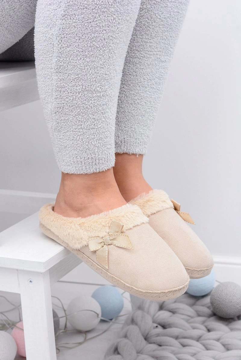Klapki Damskie Z Futerkiem I Kokardką SOXO Beżowe