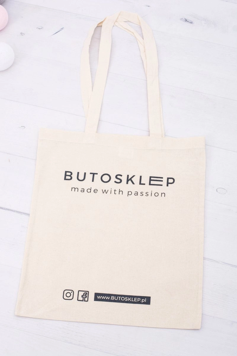 Firmowa eko torba na zakupy i nie tylko od BUTOSKLEP.pl, długie ucha dzięki którym, wygodnie zawiesisz torbę na ramieniu czy powiesisz na krześle. Najmodniejsze torby na zakupy, wykonane z bawełny o grubości 150g/m2, nadruk jednostronny. Śmieszny tekst umieszczony na torbie, wywoła uśmiech u każdego!