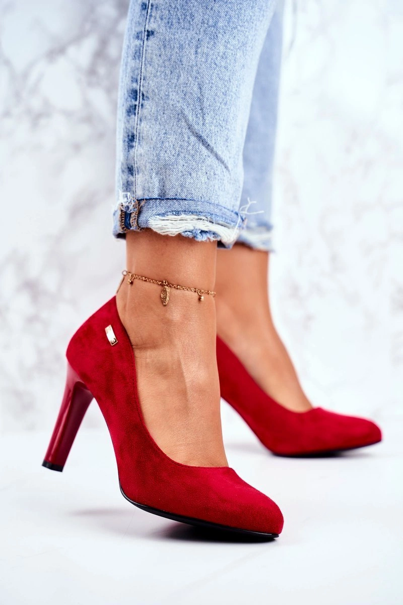 Czółenka damskie Zamszowe Czerwone Na Słupku Sergio Leone Campbell