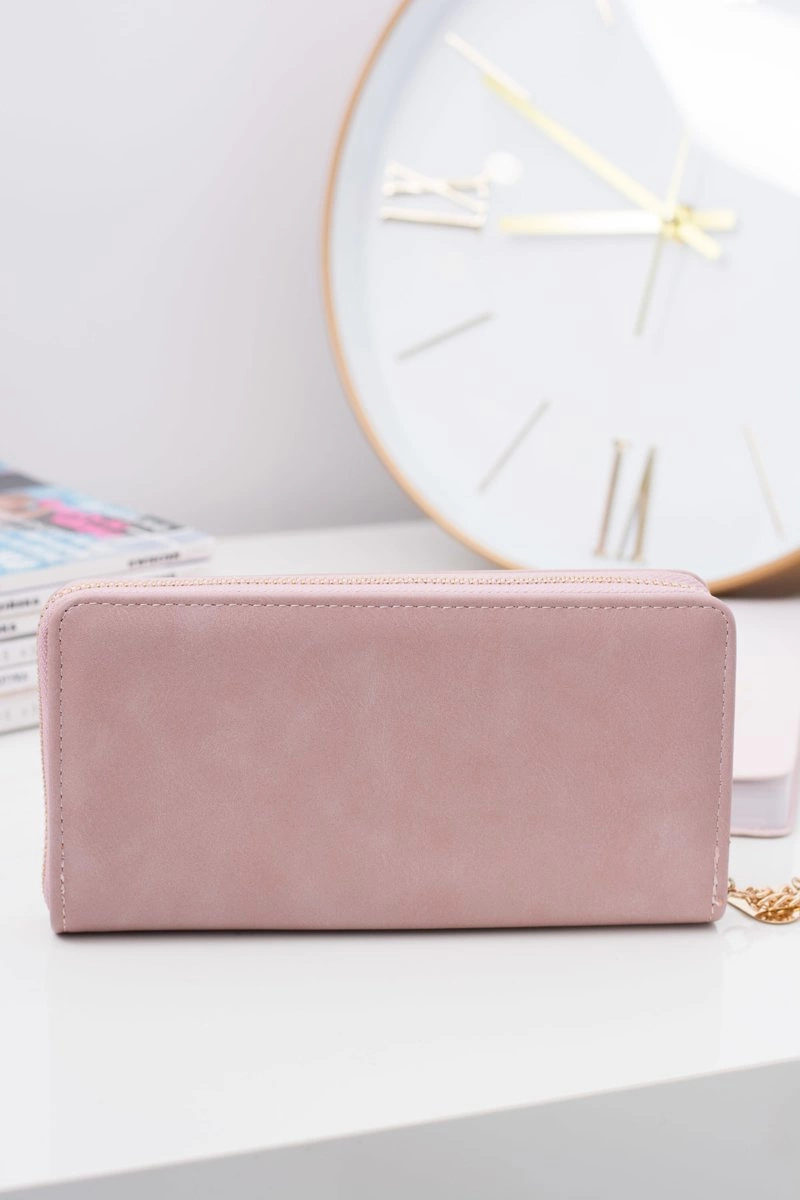 Damski Różowy Duży Portfel Brelok Złote Serce