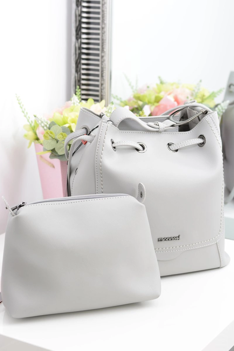 Wykonana z eko skóry torba damska typu worek, średniej wielkości(29/28/16cm). Torebka zawieszona na rączce z biżuteryjną klamrą i pasku. Na przodzie biżuteryjna blaszka z logo marki Monnari i wyraziste przeszycia. Torba ze ściągaczem w formie troczków, zapinana na suwak, wnętrze gładkie. W zestawie znajduje się mała kosmetyczka którą można wykorzystać oddzielnie bądź przypiąć we wnętrzu torebki jako dodatkową kieszeń. Polecamy ten model jako dodatek do miejskiej stylizacji.