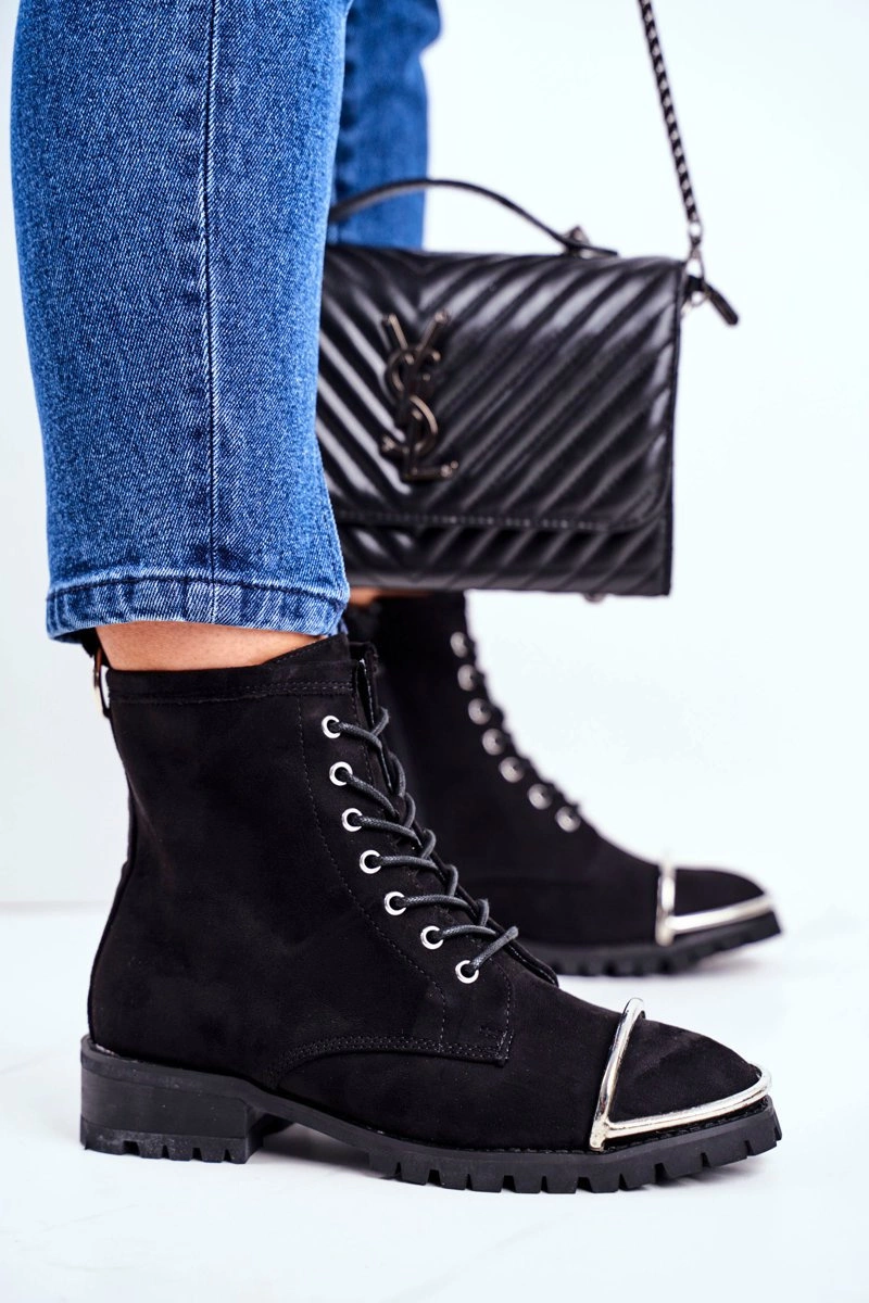Botki Damskie Lu Boo Czarne Zamszowe Workery ze Stalową Oprawą Jacksy