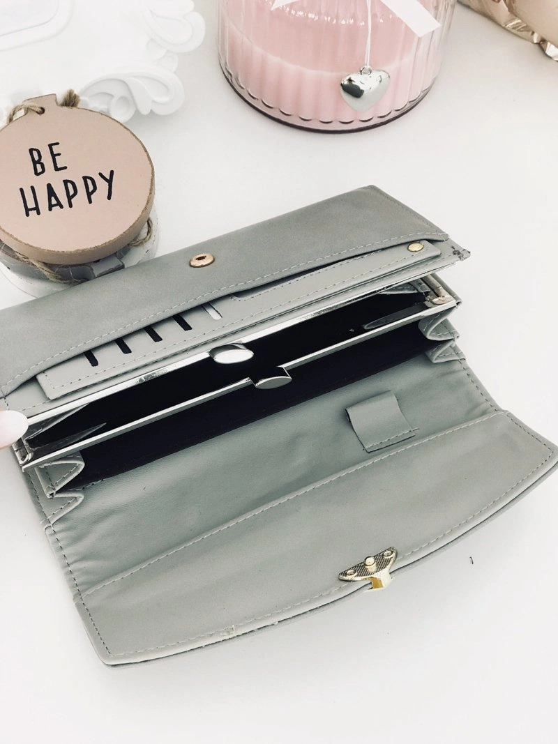 Przedstawiamy piękne portfele dla eleganckich Pań, dostępne w kilku cudownych kolorach. Produkty te charakteryzuje wyjątkowa prostota i elegancja. Wykonywane są przy użyciu najwyższej klasy materiałów. Staranne i piękne wykończenie każdego portfela oddaje niesamowitą dbałość o detale oraz modowy gust. Portfel posiada zapinanie na zatrzask. Wewnątrz znajdują się dwie kieszonki, jedna zapinana na zamek, aż 8 przegródek na karty oraz miejsce na zdjęcie.