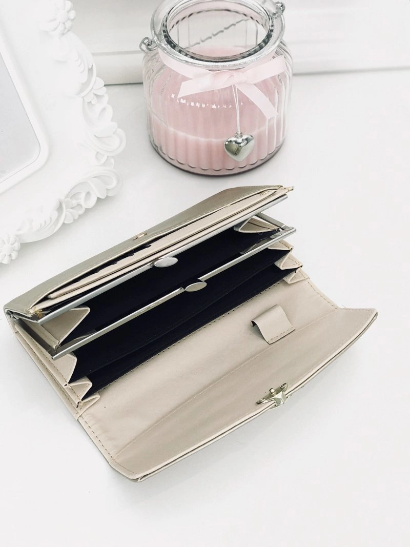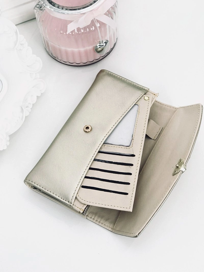 Przedstawiamy piękne portfele dla eleganckich Pań, dostępne w kilku cudownych kolorach. Produkty te charakteryzuje wyjątkowa prostota i elegancja. Wykonywane są przy użyciu najwyższej klasy materiałów. Staranne i piękne wykończenie każdego portfela oddaje niesamowitą dbałość o detale oraz modowy gust. Portfel posiada zapinanie na zatrzask. Wewnątrz znajdują się dwie kieszonki, jedna zapinana na zamek, aż 8 przegródek na karty oraz miejsce na zdjęcie.