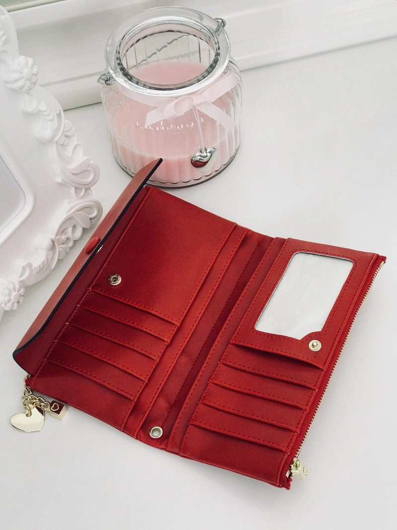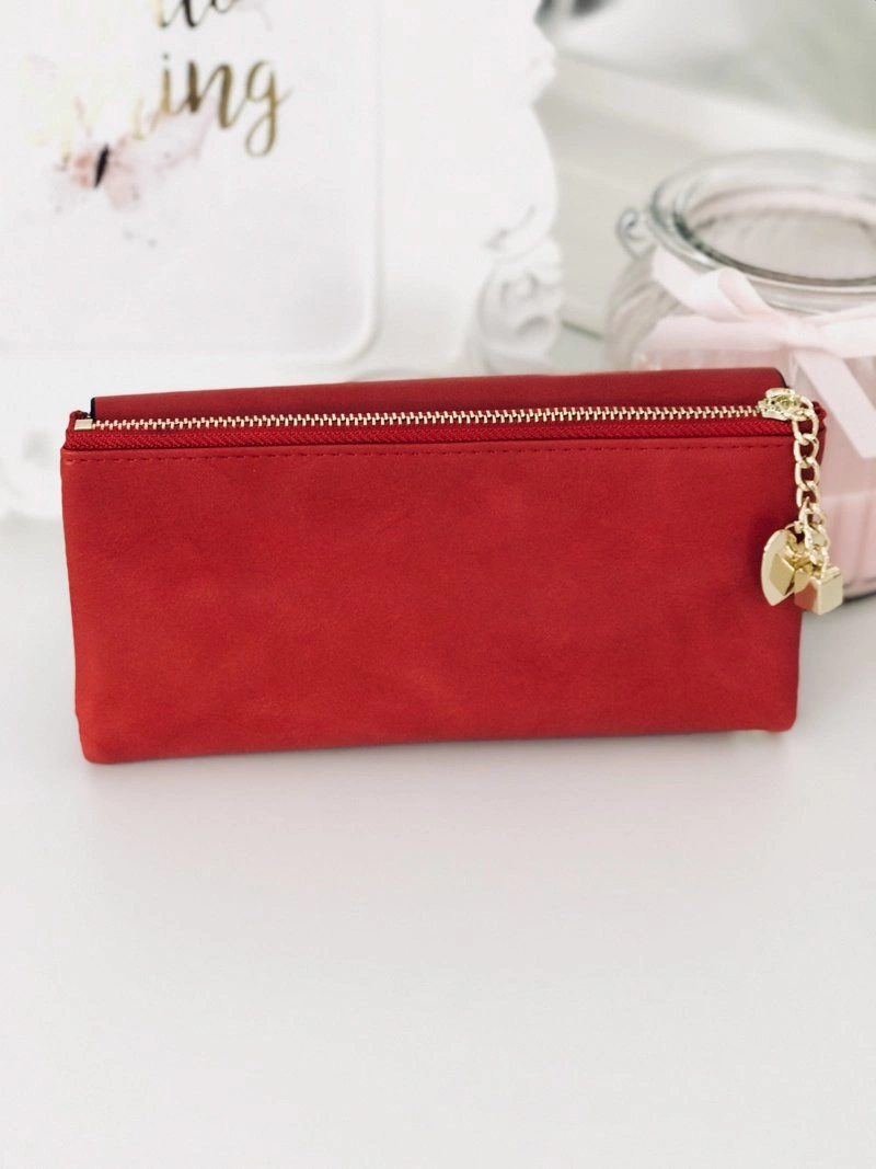 Duży Damski Czerwony Portfel z Brelokiem Serduszko