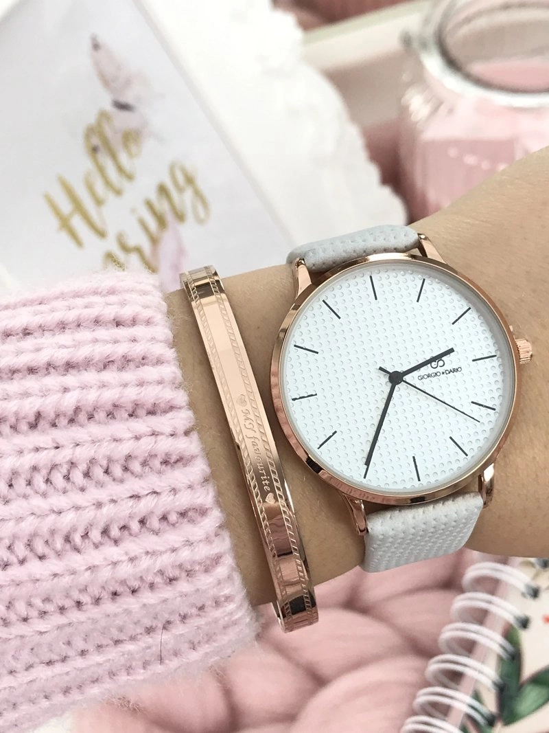 Chloe to klasyczna i elegancka linia damskich zegarków Giorgio & Dario. Zegarek posiada delikatnie płaskie szkiełko, dzięki temu jeszcze lepiej prezentuje się na ręce a jednocześnie jest bardziej czytelny. Pikowany pasek wykonany z delikatnej w dotyku skóry ekologicznej z możliwością łatwiej regulacji, koperta w złotym kolorze ze stali chirurgicznej, pasuje zarówno do eleganckich jak i codziennych stylizacji. Wysoka jakość wykonania mechanizmu i koperty.
