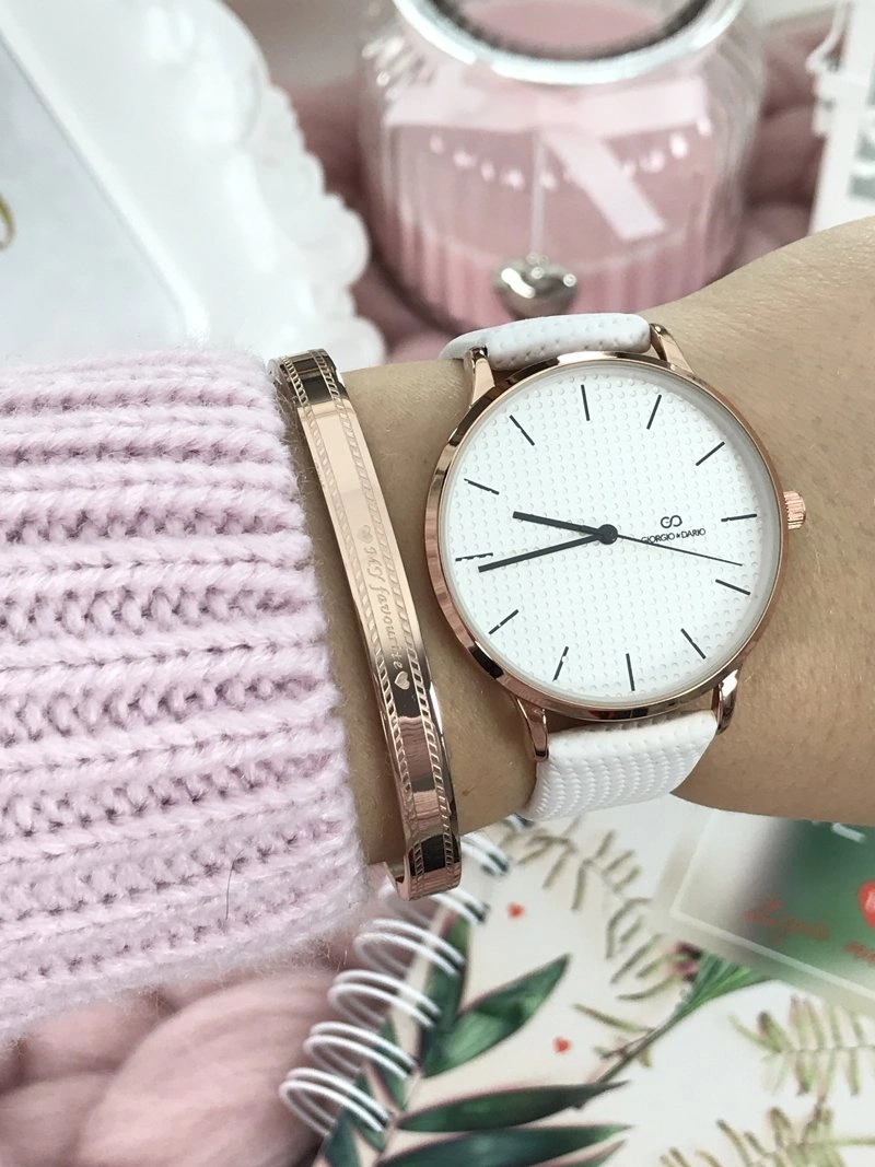 Chloe to klasyczna i elegancka linia damskich zegarków Giorgio & Dario. Zegarek posiada delikatnie płaskie szkiełko, dzięki temu jeszcze lepiej prezentuje się na ręce a jednocześnie jest bardziej czytelny. Pikowany pasek wykonany z delikatnej w dotyku skóry ekologicznej z możliwością łatwiej regulacji, koperta w złotym kolorze ze stali chirurgicznej, pasuje zarówno do eleganckich jak i codziennych stylizacji. Wysoka jakość wykonania mechanizmu i koperty.