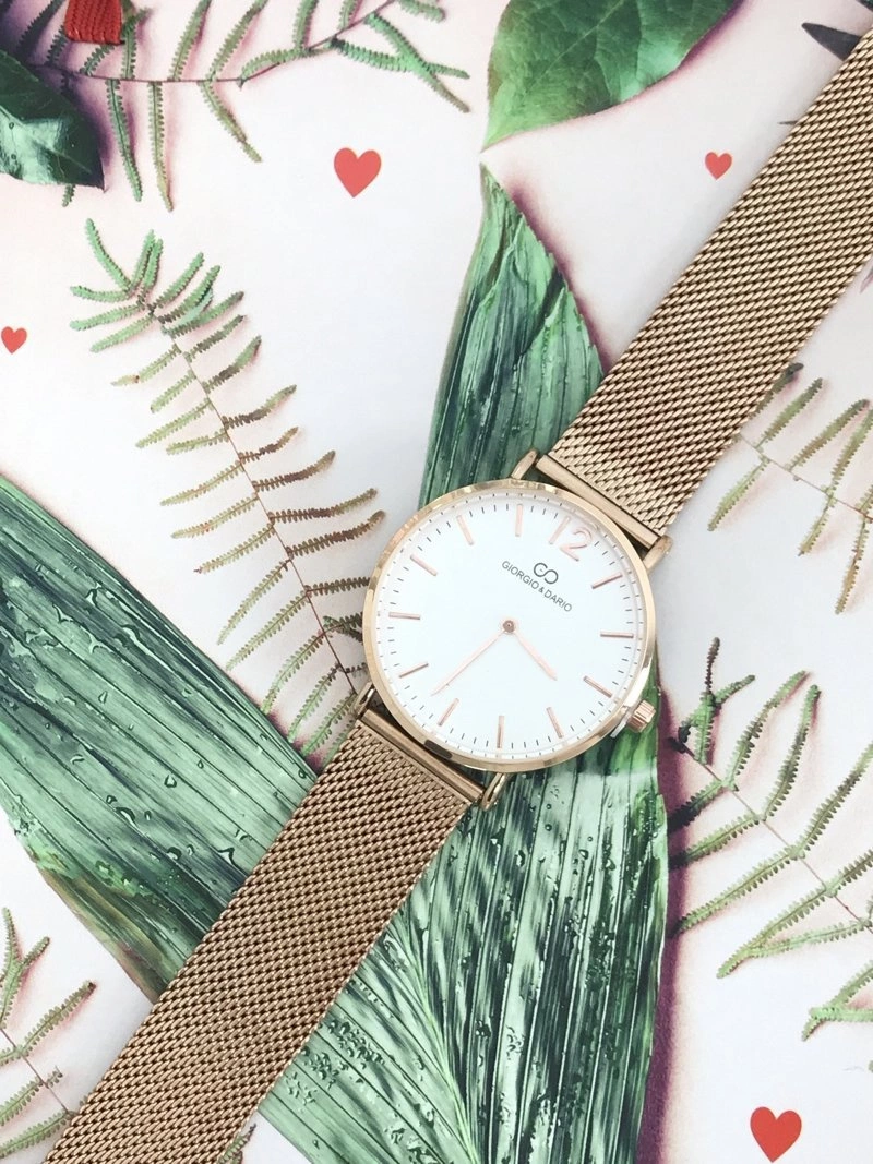 Zegarek Rene marki Giorgio & Dario to gratka stworzona z myślą o kobietach kochających gustowne dodatki nie tylko do eleganckich ale również do codziennych stylizacji. Zegarek posiada płaskie szkiełko, dzięki temu jeszcze lepiej prezentuje się na ręce a jednocześnie jest bardziej czytelny. Bransoleta typu mesh w kolorze tarczy oraz koperta utrzymana w kolorystyce złota wykonana ze stali chirurgicznej z możliwością łatwej i szybkiej regulacji. Wysoka jakość wykonania mechanizmu i koperty.