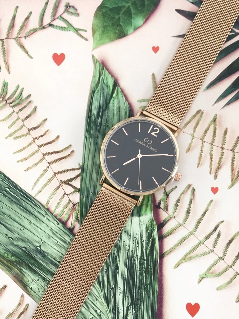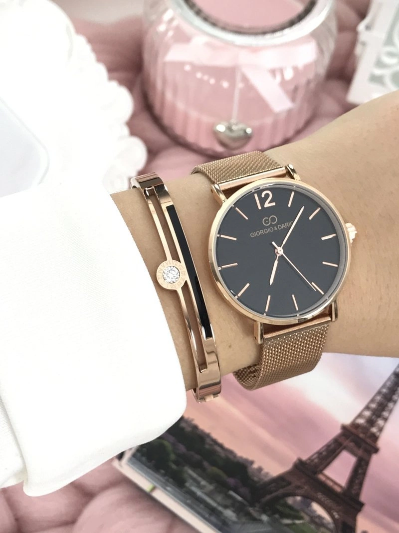 Zegarek Rene marki Giorgio & Dario to gratka stworzona z myślą o kobietach kochających gustowne dodatki nie tylko do eleganckich ale również do codziennych stylizacji. Zegarek posiada płaskie szkiełko, dzięki temu jeszcze lepiej prezentuje się na ręce a jednocześnie jest bardziej czytelny. Bransoleta typu mesh w kolorze tarczy oraz koperta utrzymana w kolorystyce złota wykonana ze stali chirurgicznej z możliwością łatwej i szybkiej regulacji. Wysoka jakość wykonania mechanizmu i koperty.