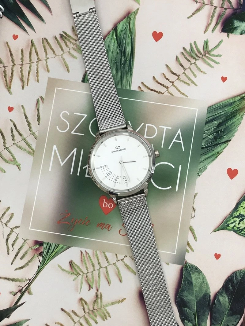 Zegarek Virgo marki Giorgio & Dario to gratka stworzona z myślą o kobietach kochających gustowne dodatki do swoich stylizacji. Zegarek posiada wypukłe szkiełko, które w połączeniu z piękną białą tarczą oraz nietypową skalą nadaje mu niecodziennego wyglądu. Bransoleta typu mesh w kolorze koperty, wykonana ze stali chirurgicznej z możliwością łatwej i szybkiej regulacji. Wysoka jakość wykonania mechanizmu i koperty.