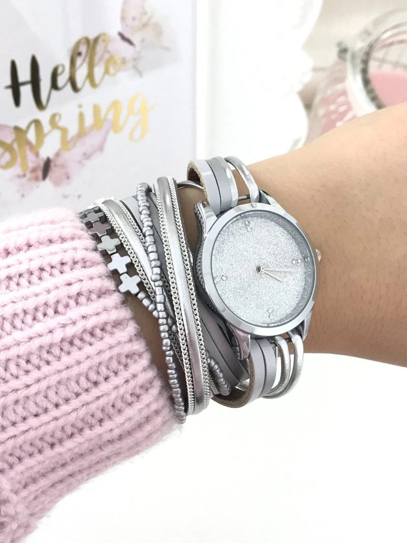 Mówią że „Diamenty to najlepsi przyjaciele kobiety” - w tym stwierdzeniu z pewnością tkwi ziarno prawdy ale my nie do końca się z nim zgadzamy. Równie gustownym dodatkiem kobiecej garderoby jest dobrze dobrany zegarek. Model Nadine marki Michael John to gratka dla Pań ceniących sobie gustowny wygląd w każdej sytuacji. Pięknie zdobiona brokatem tarcza oraz gustowny owijany pasek nadają mu ekskluzywnego wyglądu. Sięgnij po najwyższą jakość marki Michael John.