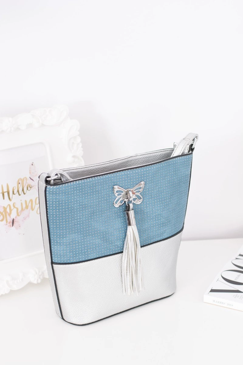 Damska Srebrna Listonoszka Torebka z Frędzlem