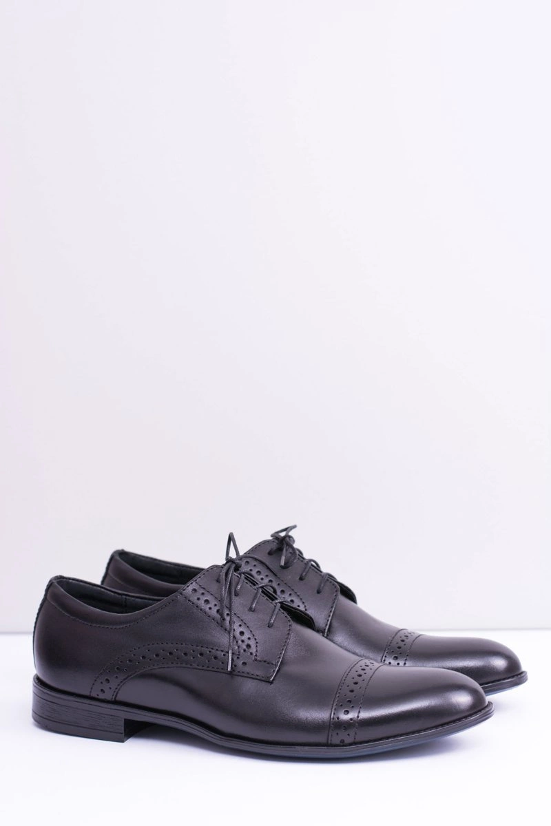 Wizytowe Męskie Skórzane Półbuty Gerard Czarne
