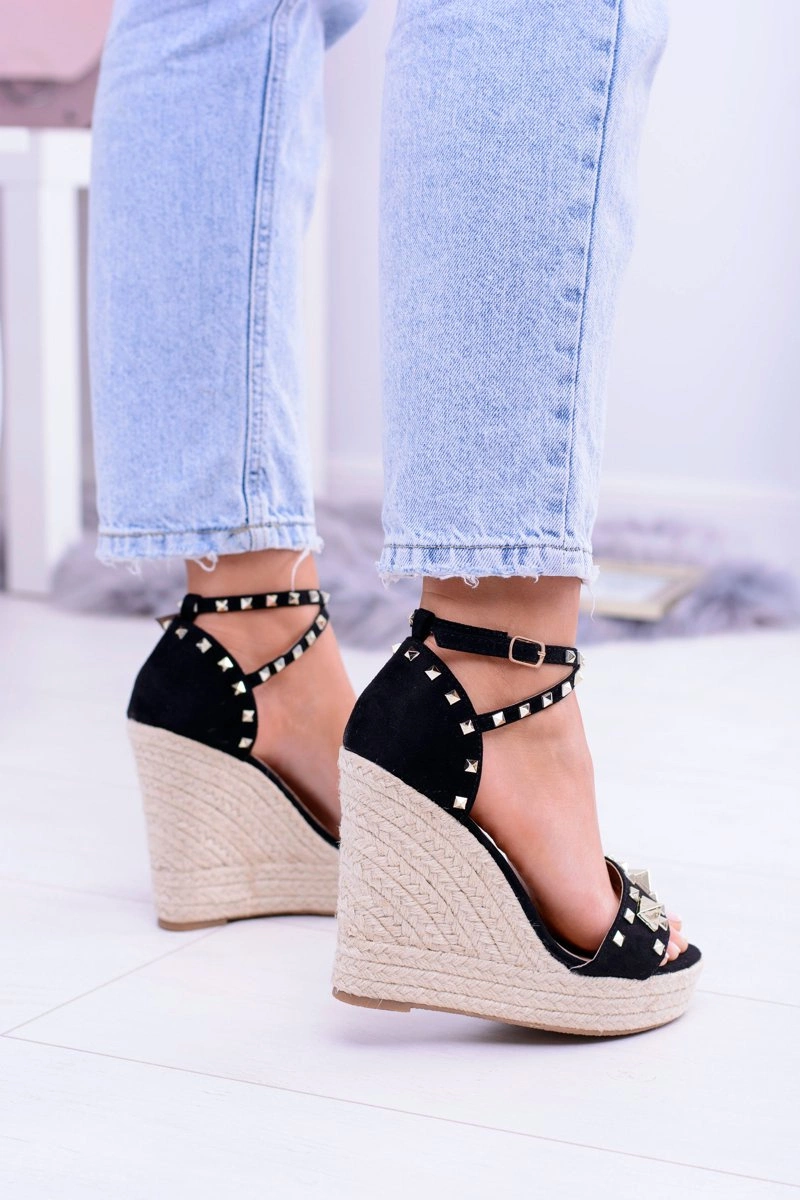 Czarne Sandały Na Koturnie Espadryl Ćwieki Dżety Narumi