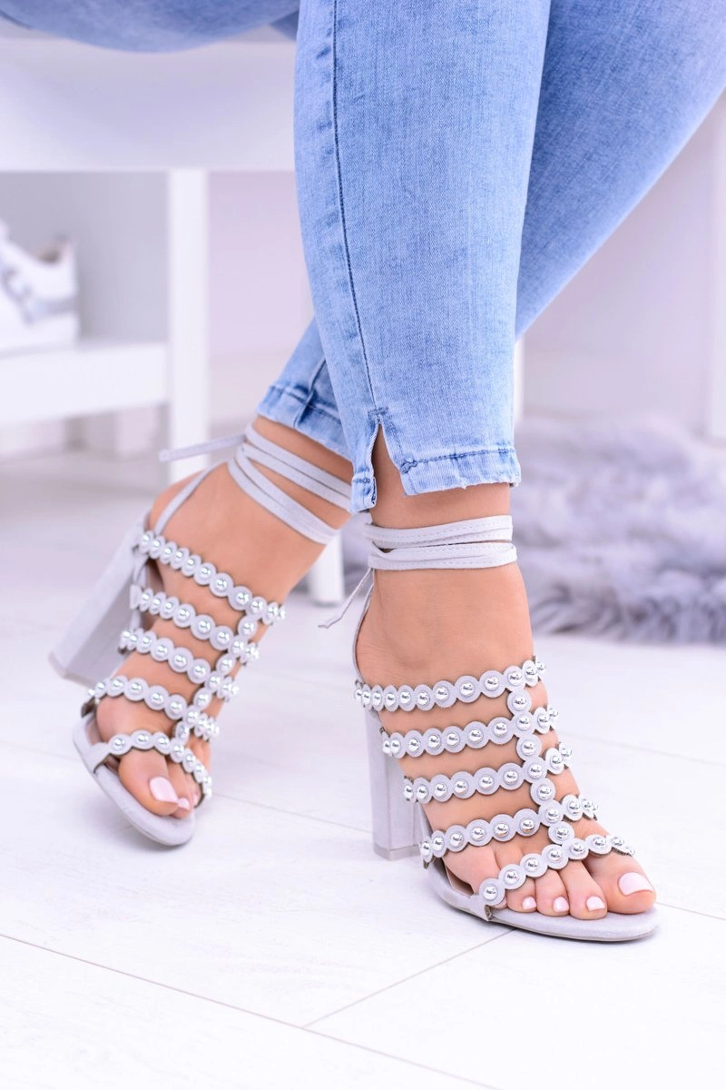 Szare Damskie Sandały na Słupku Ysmira