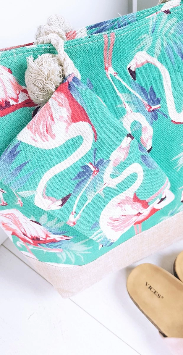 Plażowa Duża Miętowa Torebka Torba Damska Flamingi