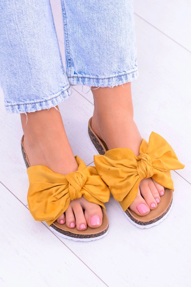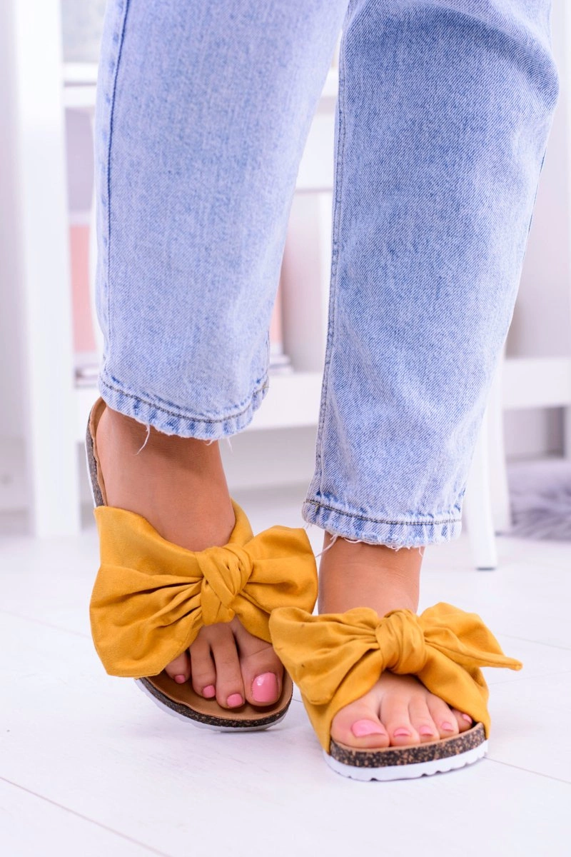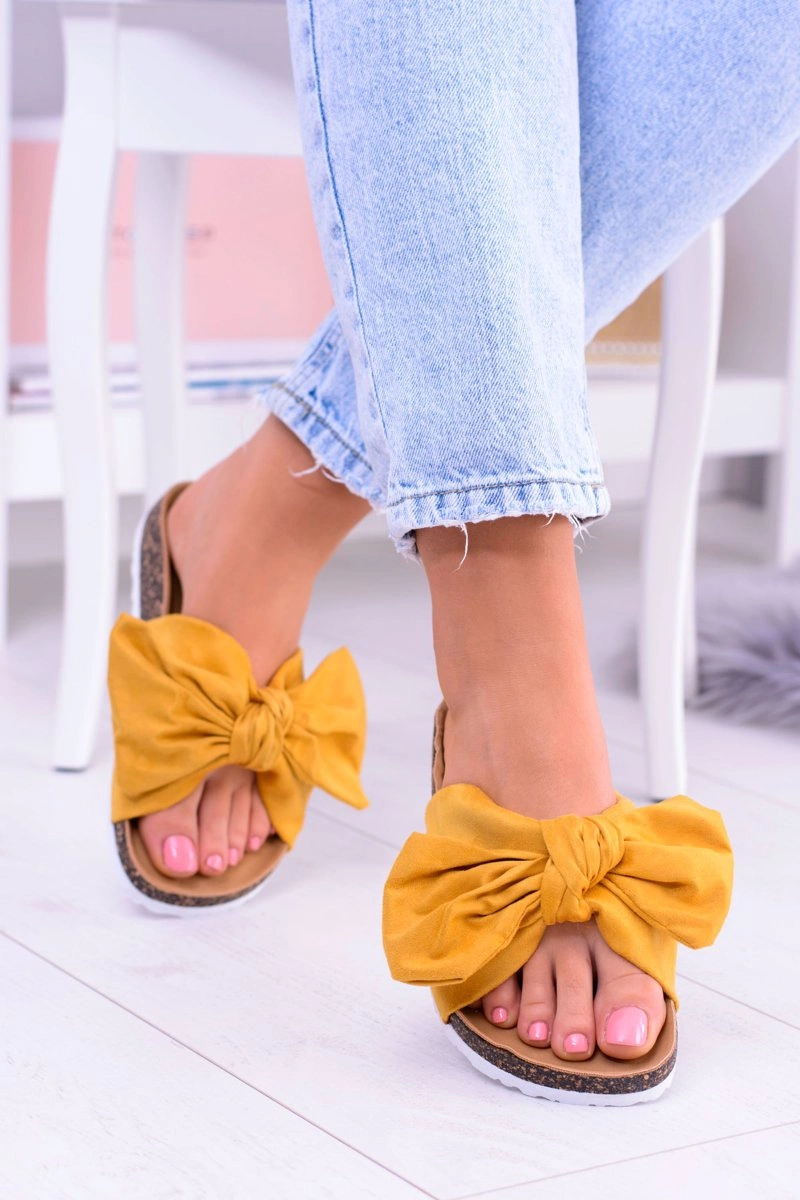 Vices Damskie Żółte Klapki Na Korku Kokarda Nina