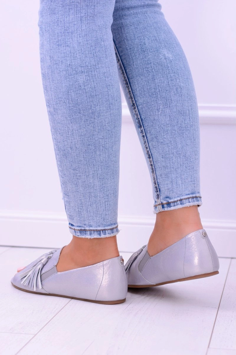 Laura Messi 1701 Skórzane Szare Baleriny Peep Toe Lendo