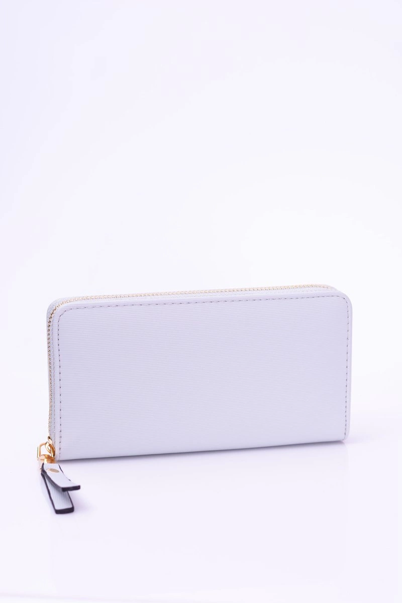 Duży Damski Prążkowany Szary Portfel Złote Okucia