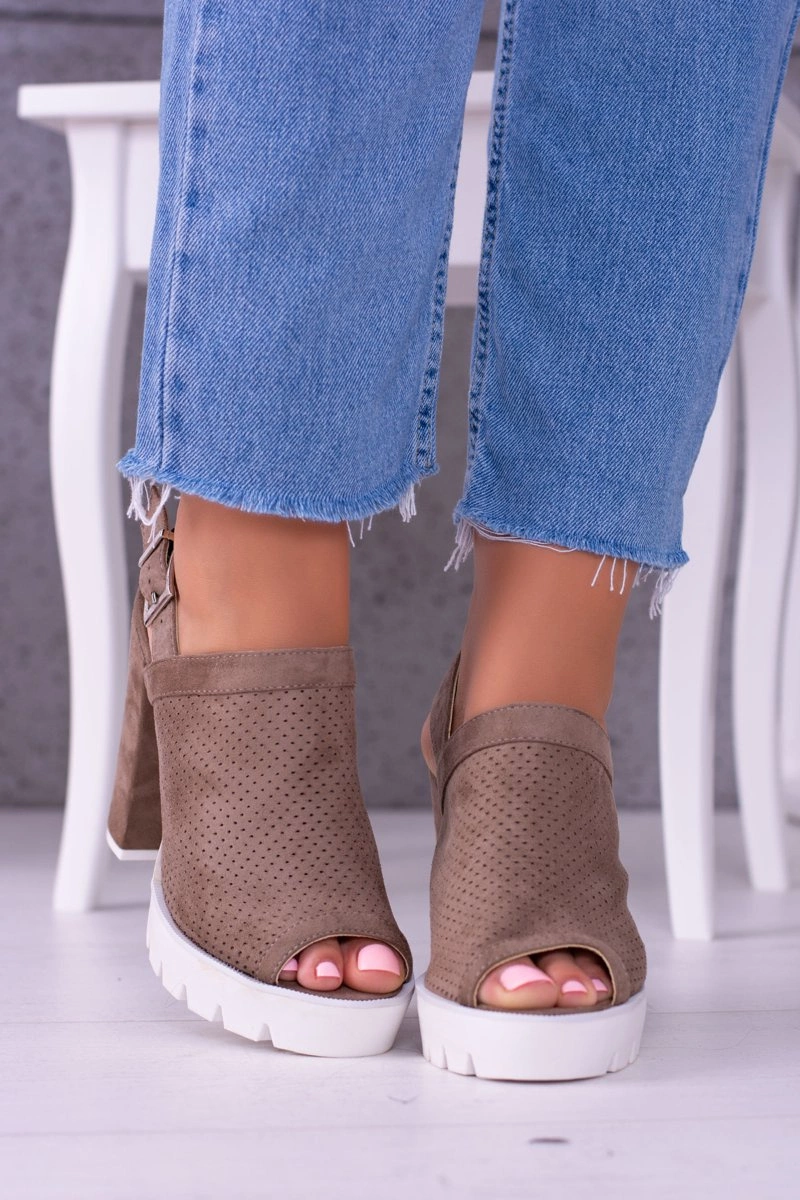 Lu Boo Zamszowe Sandały na Słupku Khaki Emare