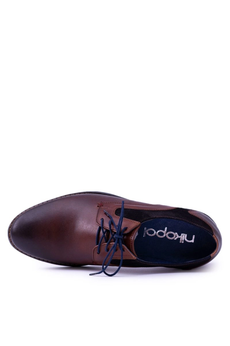 Nikopol Brązowe Skórzane Męskie Półbuty Zinedine
