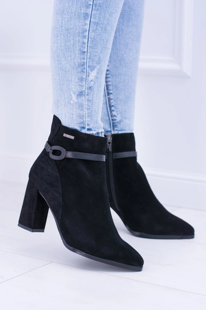 Big Star Czarne Zamszowe Botki Na Słupku BB274383