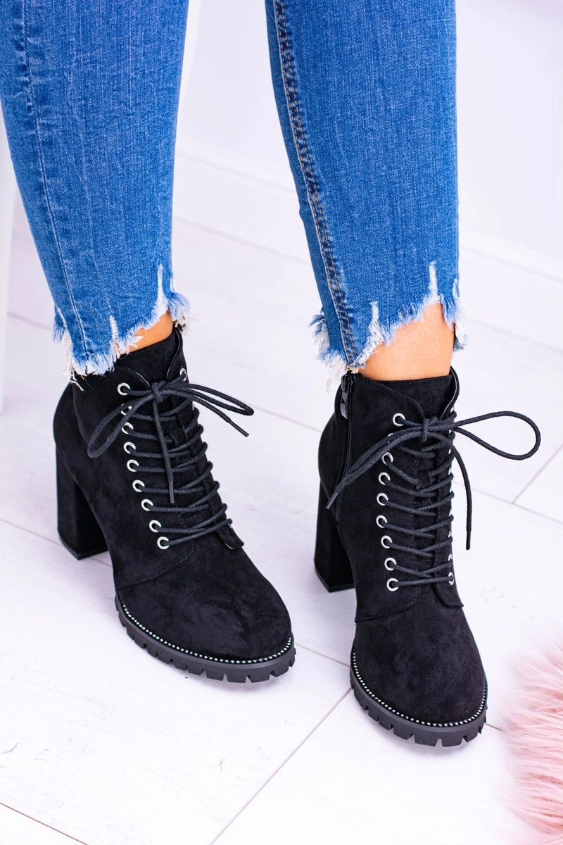 Lu Boo Czarne Zamszowe Botki na Słupku Cyrkonie Halsey