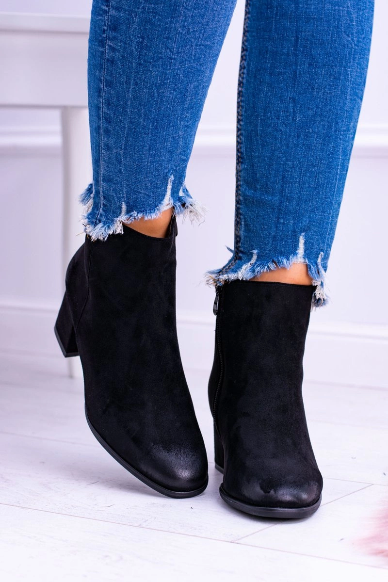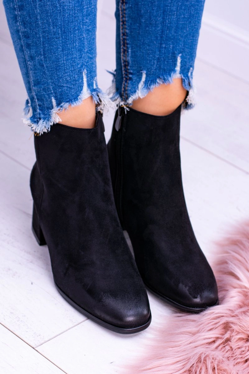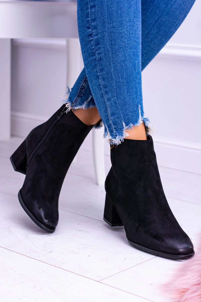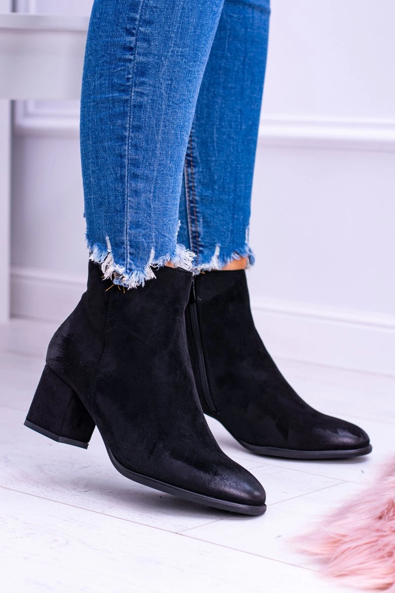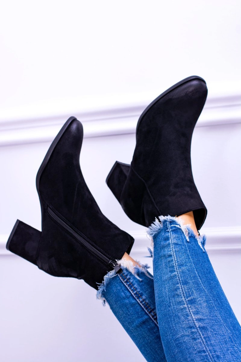 Damskie Czarne Botki Na Słupku Zamsz Ferimate