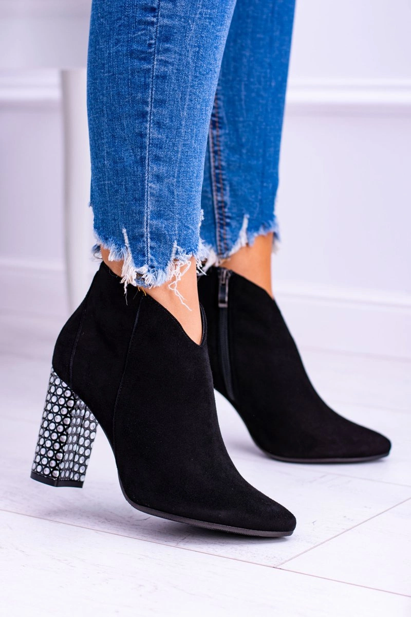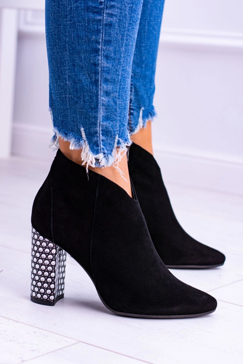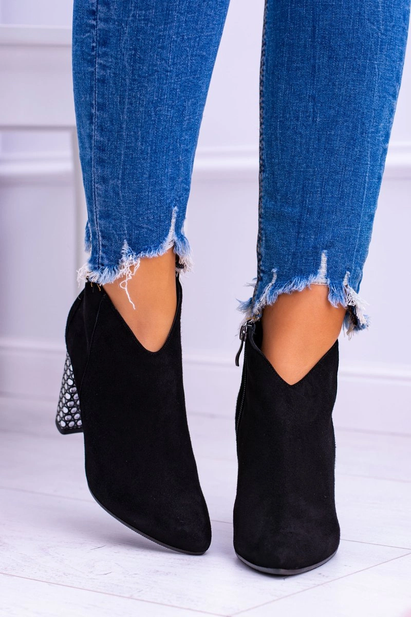 Czarne Eleganckie Zamszowe Botki na Słupku Laura Messi 1849
